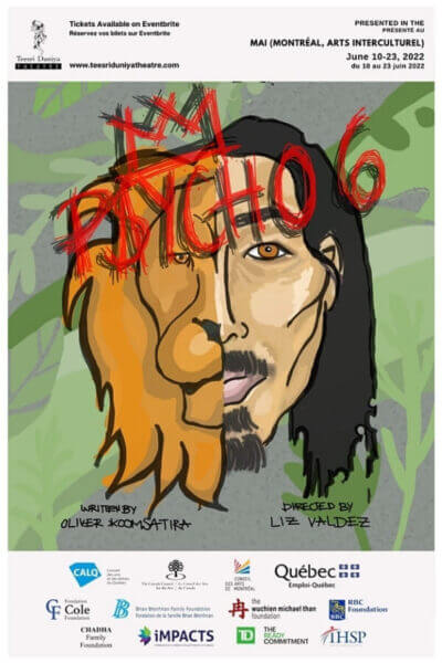 10 – 23 juin 2022 Psycho 6 Studio des Arts Interculturels de Montréal (MAI) Dramaturge : Oliver Koomsatira Directrice : Liz Valdez Psycho 6 a été développé dans le cadre du programme Fireworks du Théâtre Teesri Duniya. Il suit le parcours de K, un jeune homme qui a été ballotté entre foyers d’accueil et centres pour jeunes depuis l’âge de 9 ans. Son foyer brisé, son tempérament fougueux et sa détresse financière l’ont tous conduit sur un chemin d’activités criminelles de plus en plus dangereuses. La pièce aborde un sujet rarement traité dans la communauté théâtrale : les gangs de jeunes, le proxénétisme et le système carcéral. Elle examine en profondeur comment des facteurs socio-économiques spécifiques créent un contexte dans lequel les personnes marginalisées de couleur sont vulnérables à la délinquance, par pure nécessité. Distribution Oliver Koomsatira – K Équipe créative Alessandra Tom – Assistante à la mise en scène Masha Bashmakova – Directrice de production Elyse Quesnel – Régisseuse James Douglas – Directeur technique Christine ML Lee – Conception sonore Zoe Roux – Décors/Éclairage Nalo Soyini Bruce – Costumes Lire les critiques Theatre: Oliver Koomsatira’s «Psycho 6»: Against All Odds Psycho 6: The Sweet Lie that the Blame Is Always on the Others Play delves into what drives an individual to crime PSYCHO 6 Gets World Premiere at Teesri Duniya Theatre in June
