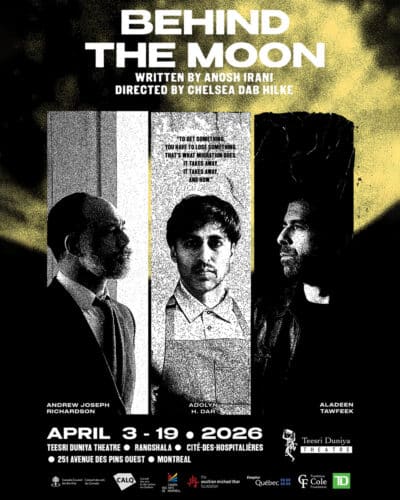 April 3-19, 2026 Behind the Moon Rangshala Presented by Teesri Duniya In a Mughlai restaurant in Toronto, a late-night visit from mysterious stranger, Jalal, rattles the cage and shatters the peace. Ayub, the restaurant’s employee, must now face the decisions he’s made and the family he’s left behind – all while keeping the restaurant shiningly clean for Qadir Bhai, the proud restaurant owner. From the award-winning playwright and novelist Anosh Irani, Behind the Moon is a story of love and loss, freedom and faith, the meaning of brotherhood, and what it means to search for a better life. Directed by Chelsea Dab Hilke, who previously directed Keffiyeh/Made in China at Teesri in April 2025. The show is approximately 105 min with a 15 minute intermission in which we will be serving free tea. SPECIAL SHOWS Talkback with Artists & Playwright – April 5 matinee, both shows on April 11Mask Mandatory – April 15Relaxed Performance – April 18 matinee Content Warnings: This show contains brief flashing lights, stage violence, deals with themes of immigration and labour exploitation, and discusses suicide and the death of a child. Accessible Tickets Teesri Duniya Theatre has implemented a new tiered ticketing system, where tickets will be available at reduced pricepoints for all shows. There are limited tiered tickets for each show, priority going to early buyers. As well, these tiered tickets do not change your seating options; none of our tickets have assigned seats. Buy Tickets Today Mon Tue Wed Thu Fri Sat Sun M T W T F S S 1 2 3 4 5 6 7 8 9 10 11 12 13 14 15 16 17 18 19 20 21 22 23 24 25 26 27 28 29 30 31 1 2 3 4